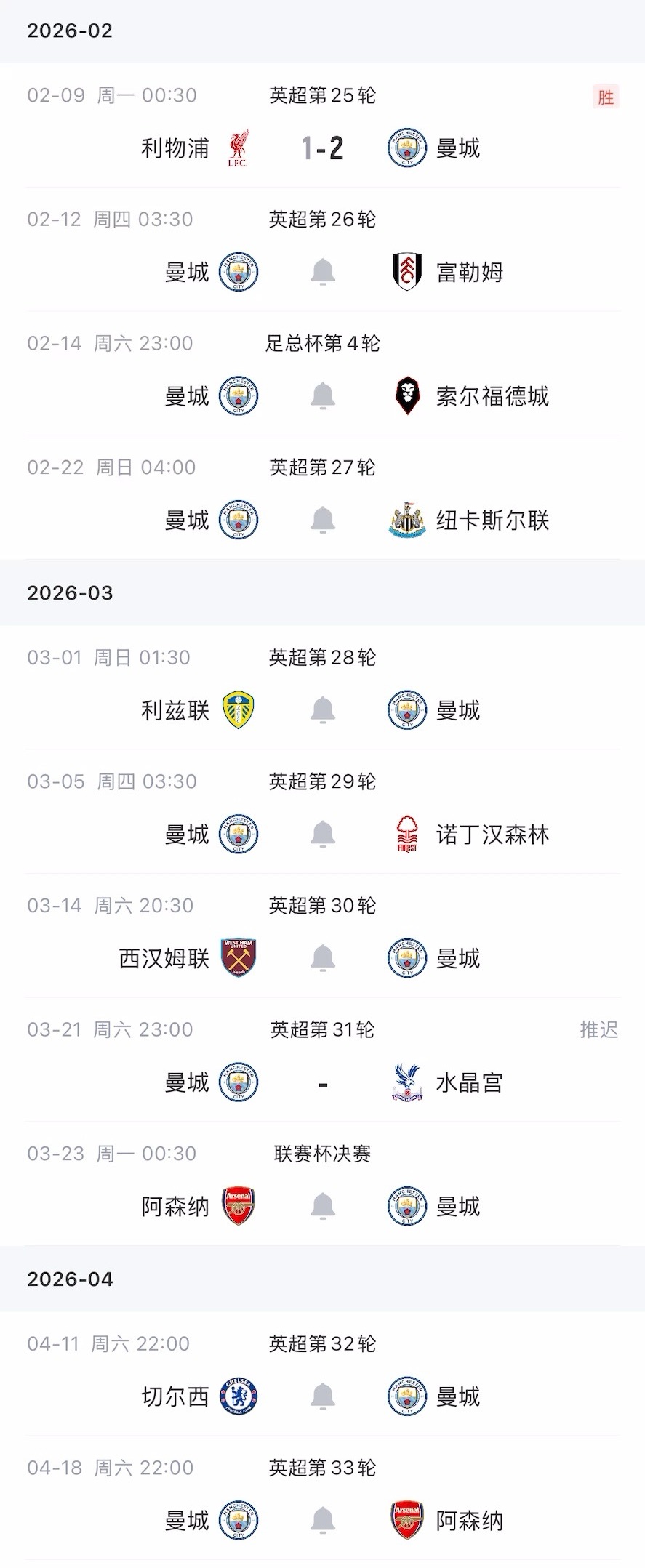 英超争冠赛程对照:3月联赛杯决赛先谋面,4月18日枪城战争!