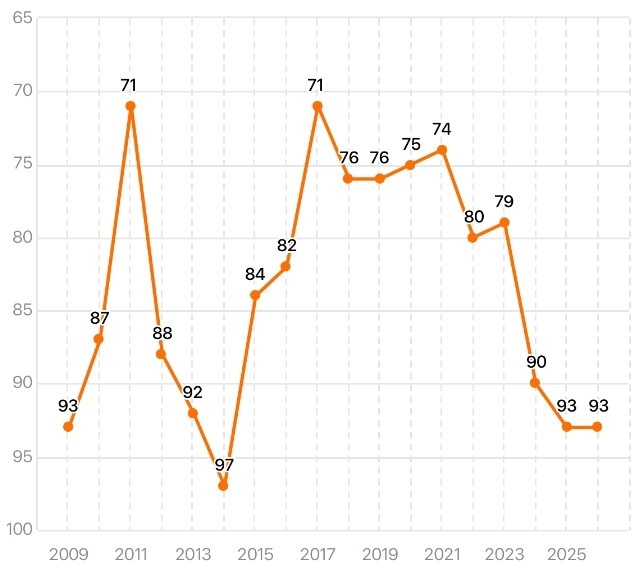 国足的世界排名持续走低,留洋潮随之偃旗息鼓。