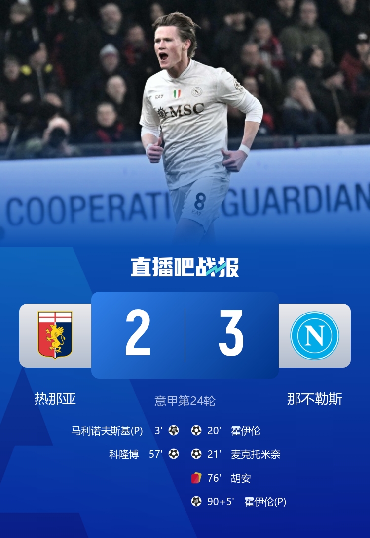 先赛距榜首6分!十人那没有勒斯3-2热那亚 霍伊伦双响+绝杀小麦立门