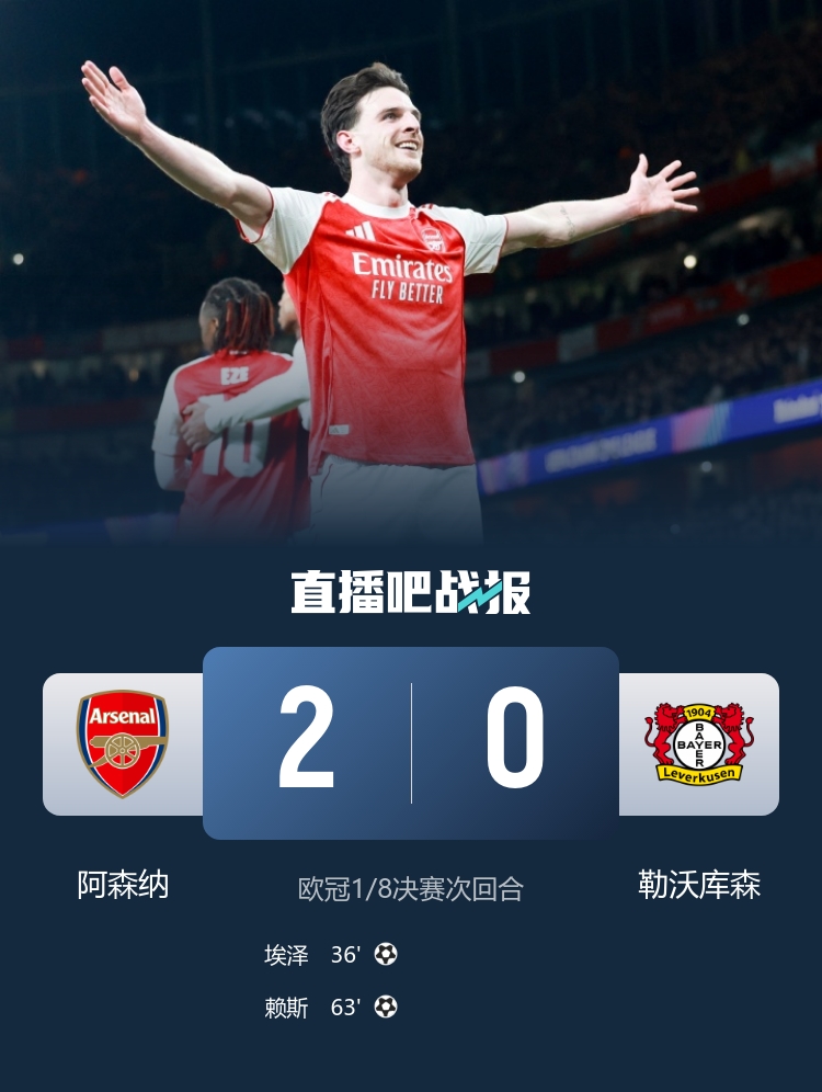 终极阿森纳2-0总比分3-1勒沃库森升级八强将对于阵葡萄牙体育。易边再战,赖斯远射立功,哈弗茨进球被吹。